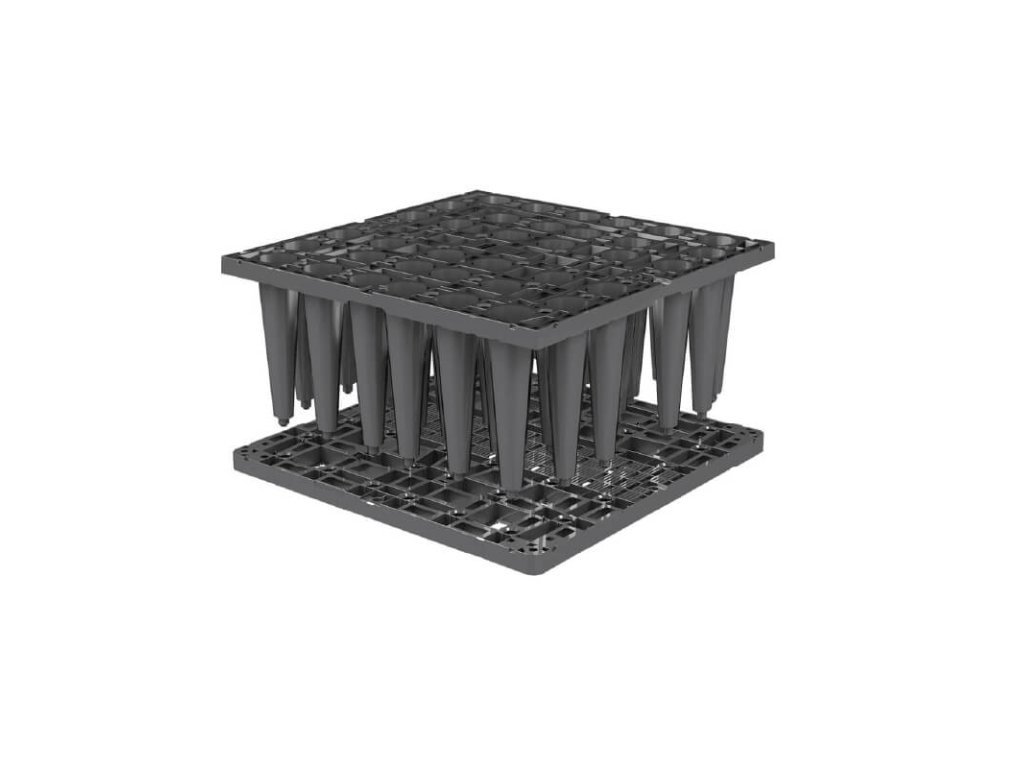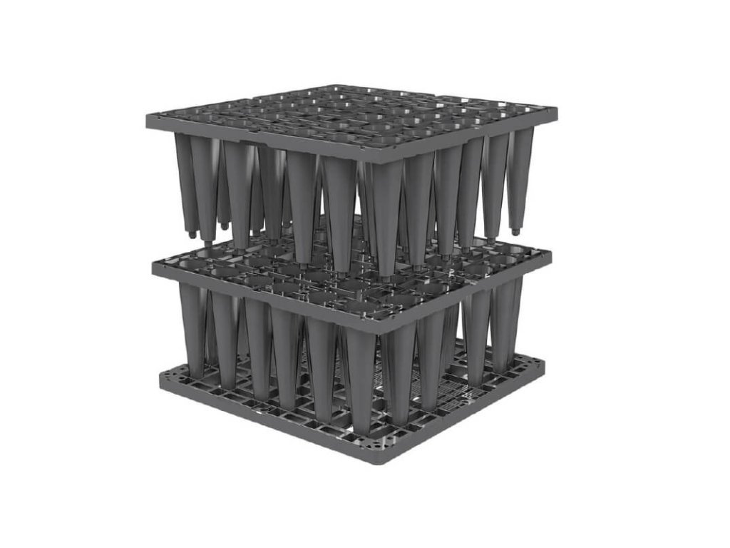 - Propojovací spojky – Pro pevné spojení bloků a stabilitu celého vsakovacího objektu. Jednoduché zacvaknutí umožňuje rychlou a bezproblémovou montáž.