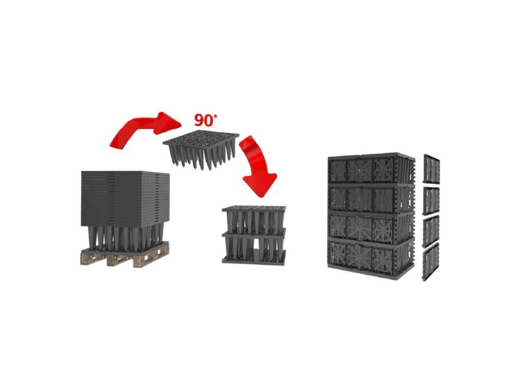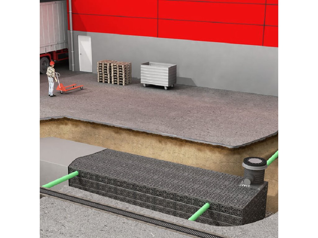 - ✅ Vysoká účinnost vsakování a retenční kapacita – čistý objem modulu cca 202 l (využitelnost 96 %).