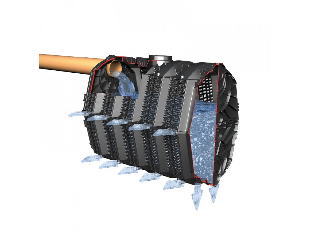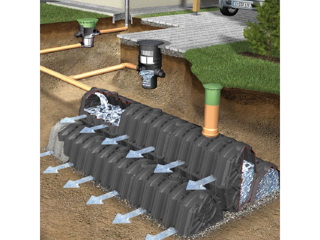 Výhodou oproti dříve často používaným štěrkovým vsakovacím objektům je okamžitá akumulační schopnost tunelů Garantia Twin.